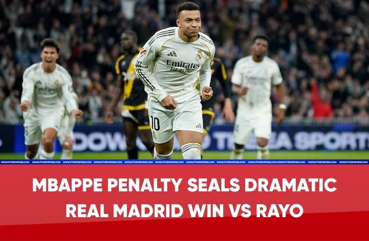 Kylian Mbappe kept his composure deep into stoppage time to convert a dramatic 100th-minute penalty, handing Real Madrid a hard-fought 2-1 victory over nine-man Rayo Vallecano in a tense La Liga derby on Sunday.